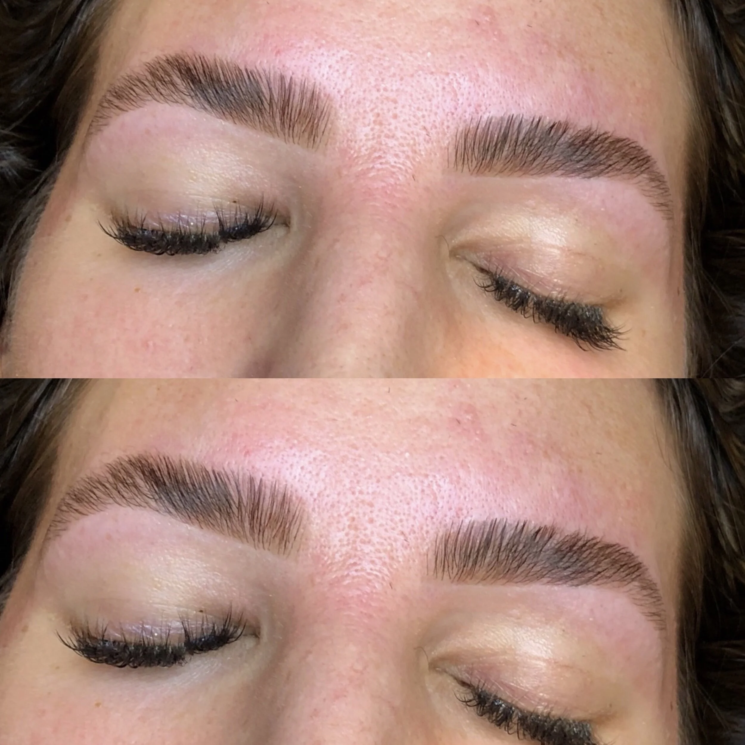 Brow lift is also known as Brow Lamination. This technique smoothes & softens the hair to give the brow a more lifted, feathered out appearance. Also a great alternative to microblading. This appointment takes about 45 min to an hour. Lamination can last up to 6-8 weeks, brow shaping should last 2-3 weeks. Brow lift after care is recommended for longer lasting results.
